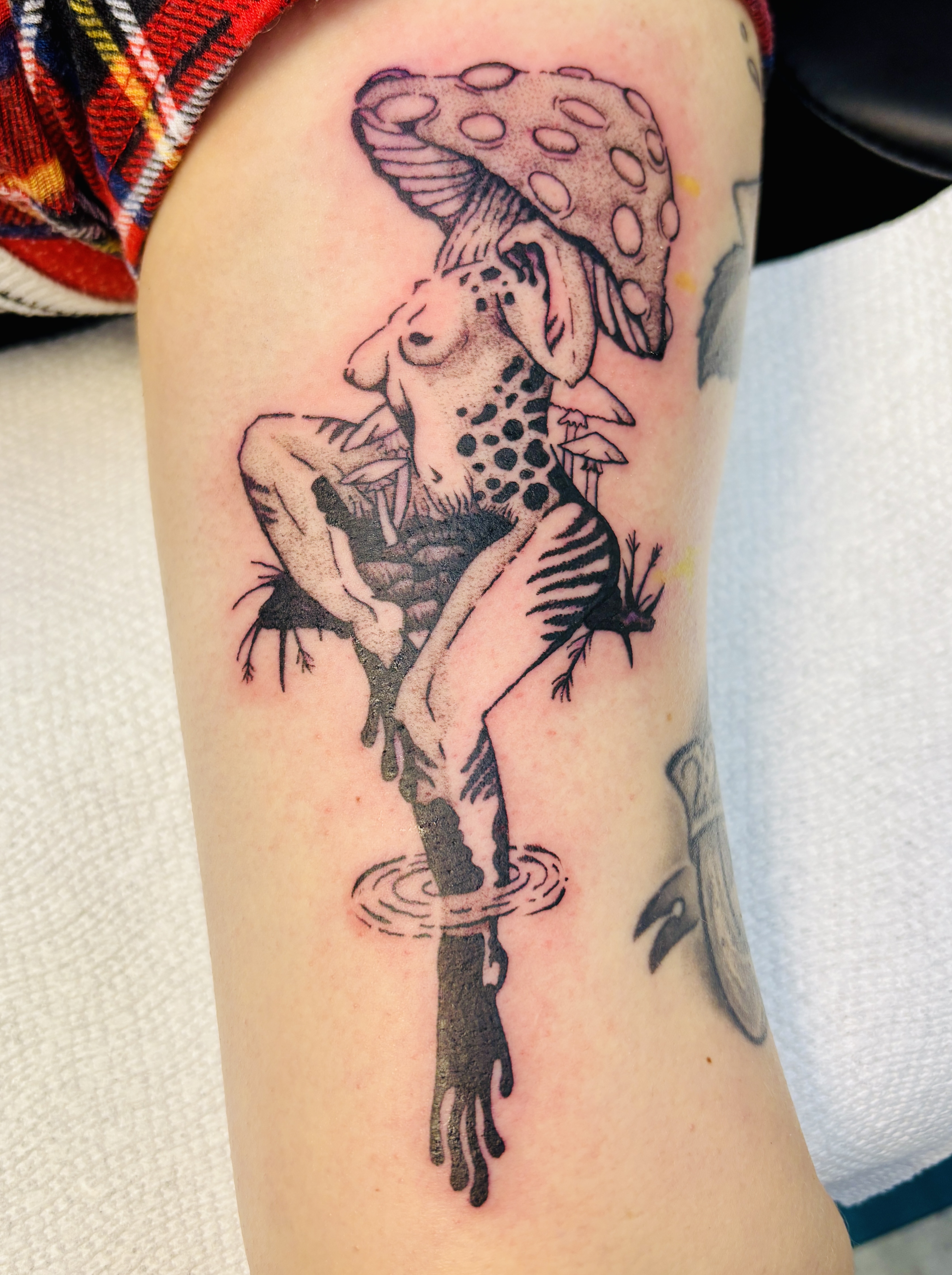Olivia’s background in scenic design for theatre informs a thoughtful approach to composition and narrative in tattooing. She has been licensed at the shop since Oct 2024.