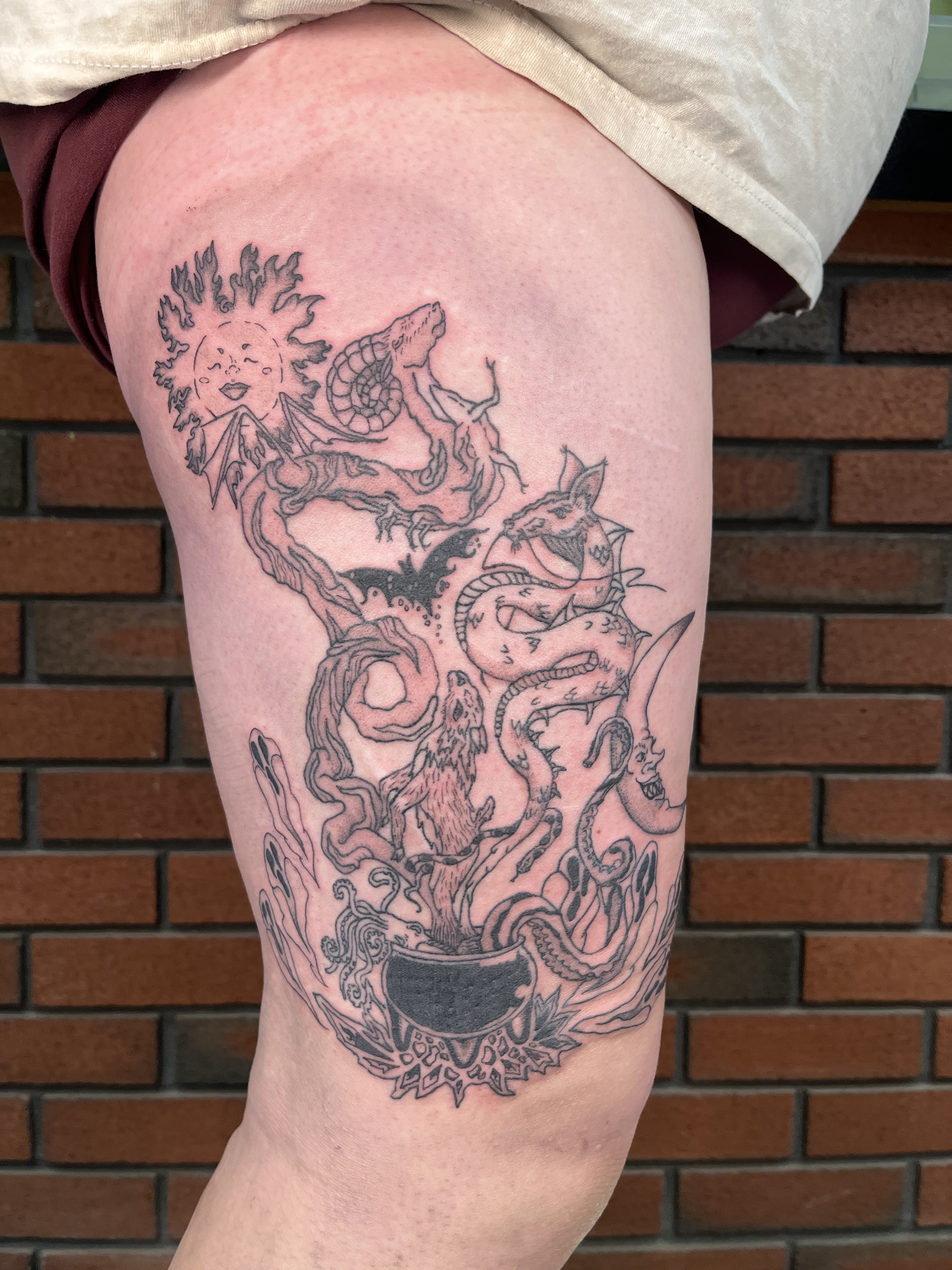 Olivia is still early in her career and is looking to specialize in medieval-inspired tattooing that draws from historical engraving, illuminated manuscripts, heraldry, crude woodblock carvings as well as besitary and more delicate botanical elements. Her work emphasizes fine-line and blackwork techniques to create detailed, enduring designs. She’s always happy to collaborate on new ideas, please don’t hesitate to reach out anytime at any of the links below for a consultation or to chat about your vision.