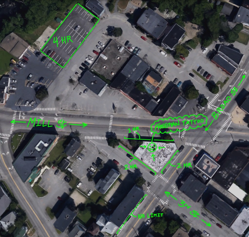 Parking in New Auburn is… interesting. We made a graphic to assist you.